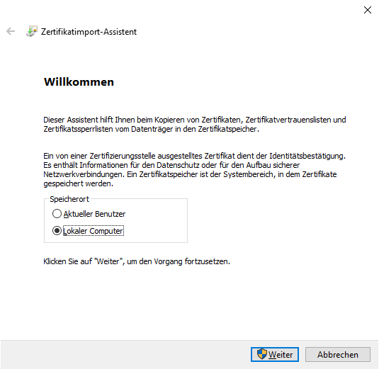 Wählen Sie den zweiten Eintrag "Vertrauenswürdige Stammzertifizierungsstellen" aus und klicken auf OK.
